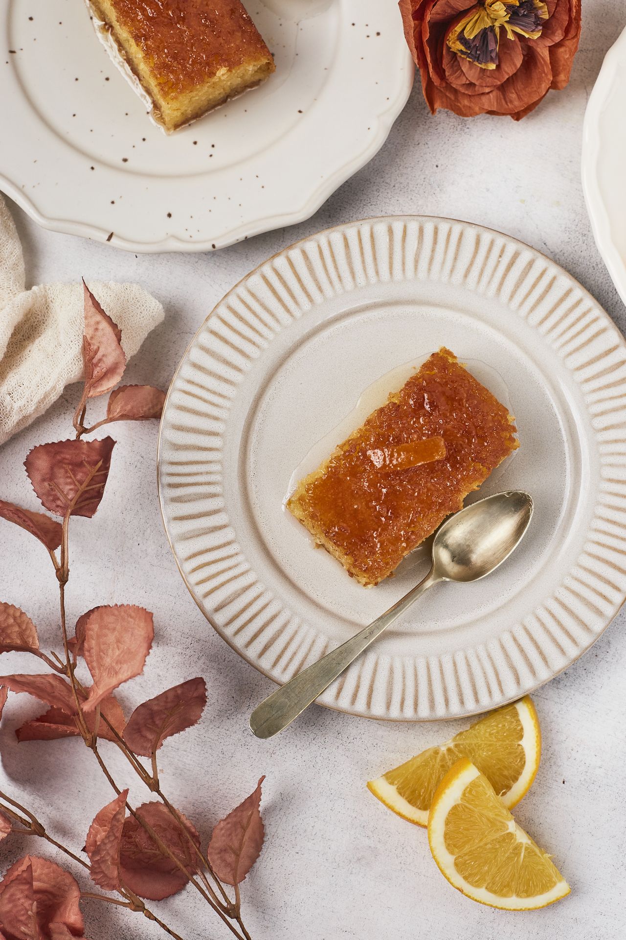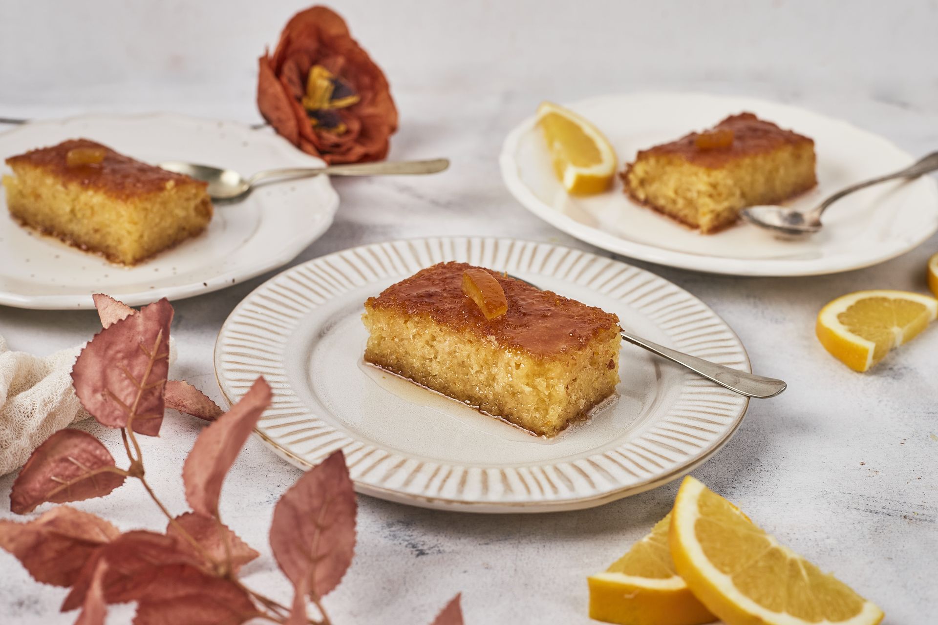 Χειροποίητο και ελαφρώς σιροπιασμένο φύλλο με πρόβειο γιαούρτι, ξύσμα & χυμό πορτοκαλιού.