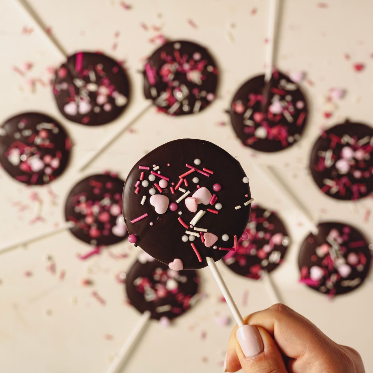 Χειροποίητα γλειφιτζούρια με σοκολάτα υγείας και διακοσμητικά.