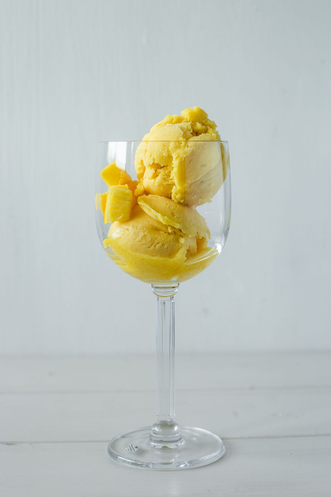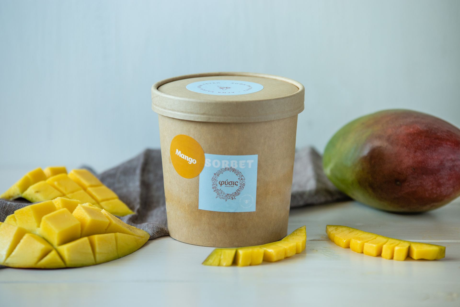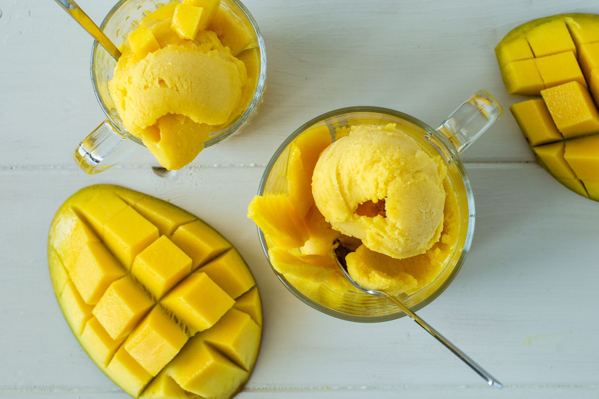 Σορμπέ μάνγκο από φρέσκο μάνγκο και χυμό λεμονιού.